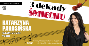 Zapraszamy na kolejne wydarzenie z cyklu Znani z ekranu w GOK, tym razem na scenie Gminnego Ośrodka Kultury pojawi się Katarzyna Pakosińska ze stand upem