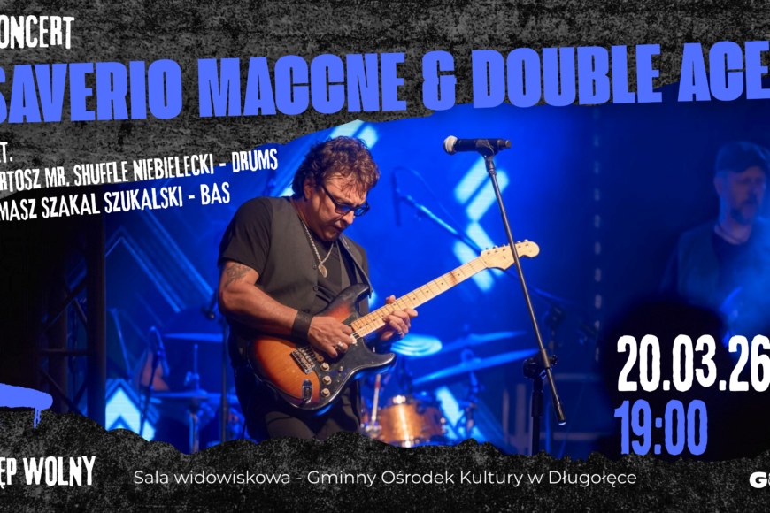 Przypominamy o piątkowym koncercie Saverio Maccne & Double Ace! Na scenie pojawią się Double Ace, czyli lokalny perkusita Bartosz Niebielecki wraz z Tomaszem Szukalskim, a razem z nimi zagra Saverio Maccne, czyli bluesowo-rockowy gitarzysta, wokalista i autor tekstów urodzony w Buenos Aires Wstęp wolny! piątek 20.03.2026 19:00 Sala widowiskowa, Gminny Ośrodek Kultury […]