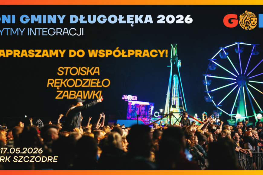 🎪 Wystaw swoje stoisko podczas Dni Gminy Długołęka 2026 r. – Rytmy Integracji 🌟 Masz ciekawy produkt, rękodzieło, lokalny biznes? Zapraszamy do udziału w strefie wystawienniczej, która będzie częścią tegorocznego festiwalu Dni Gminy Długołęka 2026 r. – Rytmy Integracji w Parku w Szczodrem! To świetna okazja, by zaprezentować swoją ofertę szerokiemu gronu odbiorców, nawiązać nowe […]