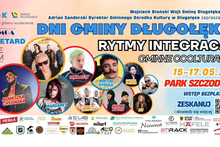 Serdecznie zapraszamy Państwa na tegoroczne Dni Gminy Długołęka – Rytmy Integracji 15–17 maja Park Szczodre Powracamy z cyklem wydarzenia Gminne COOLturalia co oznacza, że park ponownie wypełni się muzyką, śmiechem, kolorami i tysiącami mieszkańców, którzy przyjdą tu razem świętować.To będzie czas koncertów znanych artystów, rodzinnych atrakcji, warsztatów, pokazów i wspólnej zabawy – wydarzenie, które […]