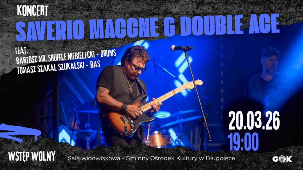 20 marca scena GOK-u rozbrzmiała mocnym, bluesowo-rockowym brzmieniem podczas koncertu Saverio Maccne & Double Ace, czyli Bartosz „Mr. Shuffle” Niebielecki – perkusja i Tomasz „Szakal” Szukalski – bas.