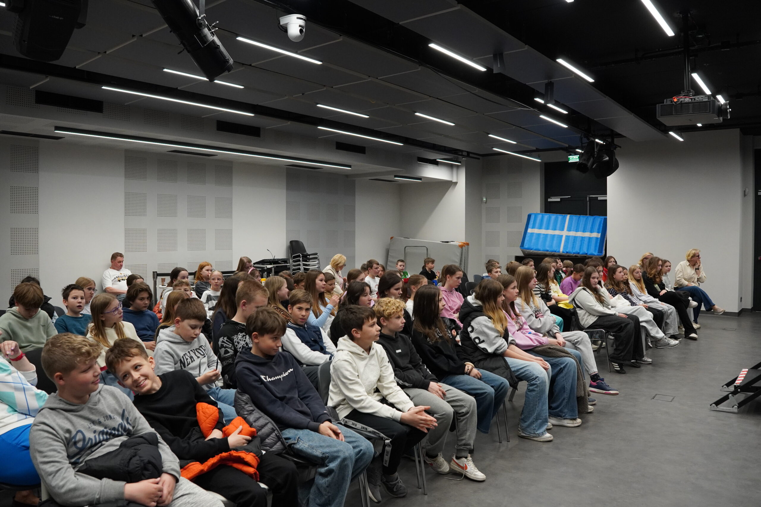 W wydarzeniu wzięło udział aż 90 uczniów klas 4–8, którzy mieli okazję spotkać się z Panią Anią, osobą niewidomą poruszającą się z psem przewodnikiem ![]()