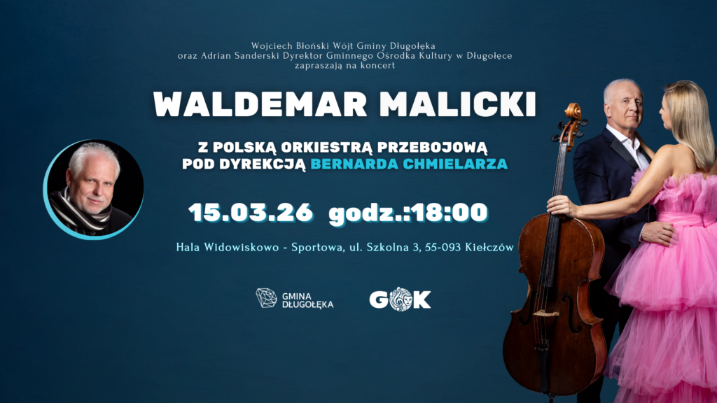 Już 15 marca 2026 Hala widowiskowo-sportowa w Kiełczowie wypełni się dźwiękami, humorem i wirtuozerią najwyższej próby. Na scenie pojawi się Waldemar Malicki wraz z Polską Orkiestrą Przebojową pod dyrekcją Bernarda Chmielarza – w zupełnie nowym projekcie koncertowym!