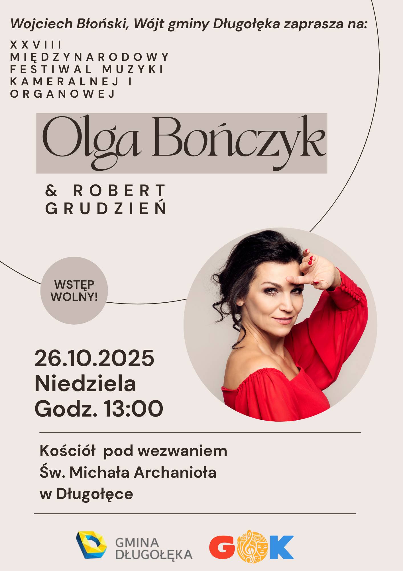 Koncert pod patronatem Wojciecha Błońskiego, Wójta Gminy Długołęka.